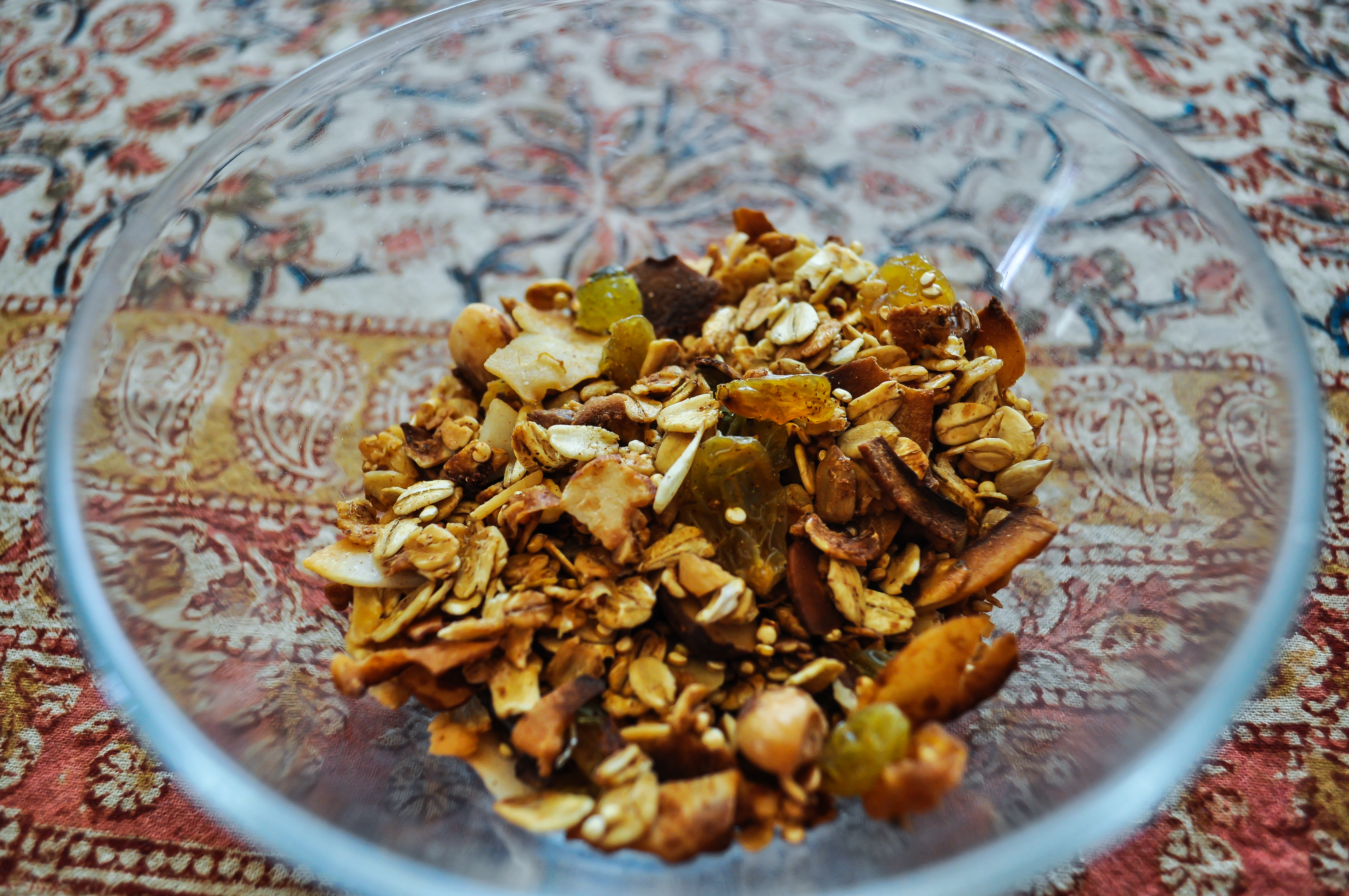 So I’ve been trying to find an alternative. Unfortunately, it’s really hard to find a cereal that is low in sugar, whole grain/gluten-free but doesn’t taste like cardboard. Like, really hard. So I decided to set about making my own. After running into snags on that front, too, I settled on perfecting a recipe for granola.